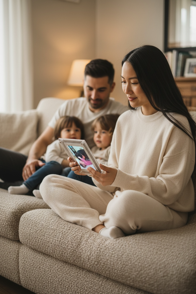 Offrez un cadre numérique qui transforme chaque photo et vidéo en souvenir vivant. Élégant, simple et touchant, il ravira vos proches à chaque regard et fera de vos moments partagés des instants inoubliables.